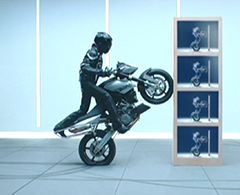 …なんと、柱に塗られたアロンアルフアでタイヤが接着され、ライダーが降りてもバイクと柱は接着されたまま。その映像に大きな反響をいただきました。第28回全日本CMフェスティバル 15秒 ACC賞