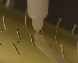 プチペンは接着剤の塗布部分がまさに「ペン」のように細くなっています。オルゴールのシリンダー部分にワンポイントで塗布していく「プチペン」。そこにピンを接着しています。するとオルゴールから美しい調べが・・・華麗に「エリーゼのために」が奏でられました。第37回全日本CMフェスティバル ACC賞