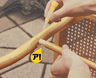 ラジコン・イス・机など、アロンアルフアが役立つ身近な修理・修繕用途例を紹介しました。うっかりモノを壊してしまったときの落胆の「ア!」と、 アロンアルフアで元通りモノが直ったときの驚きの「ア!」を 対照的に表現しています。