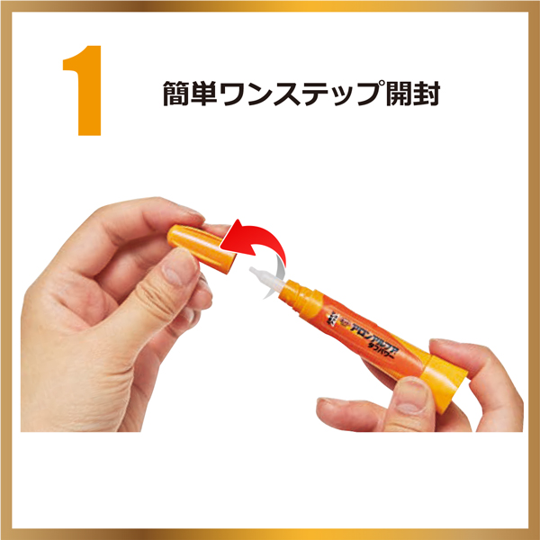 ※キャップを下に向けて開けると液が飛び出す可能性があるので避ける。