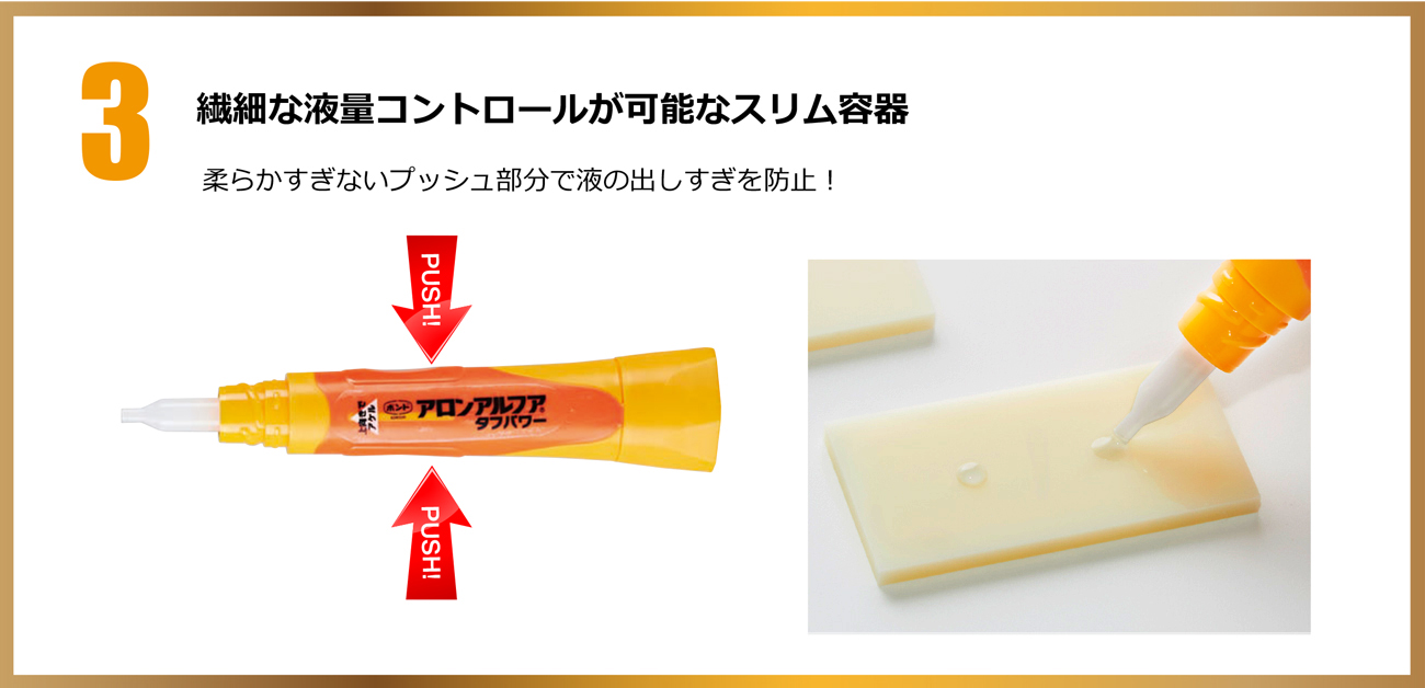 ※難接着プラスチックの接着には、アロンアルフア「プラスチック用」をご使用ください。