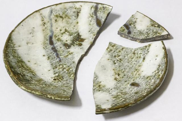 陶器が割れると小さな破片が出ることがあります。その場合は必ず、小さな破片を全て回収しておいてください。破片が足りないと、その部分が目立ってしまいます。