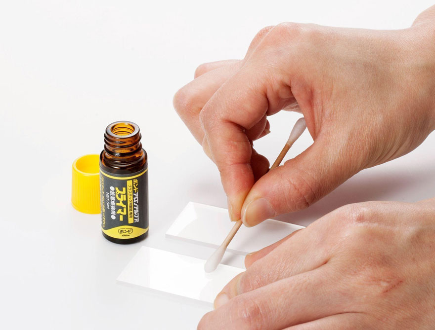 ②付属の専用プライマーを綿棒に付け、接着する両面に薄く塗る