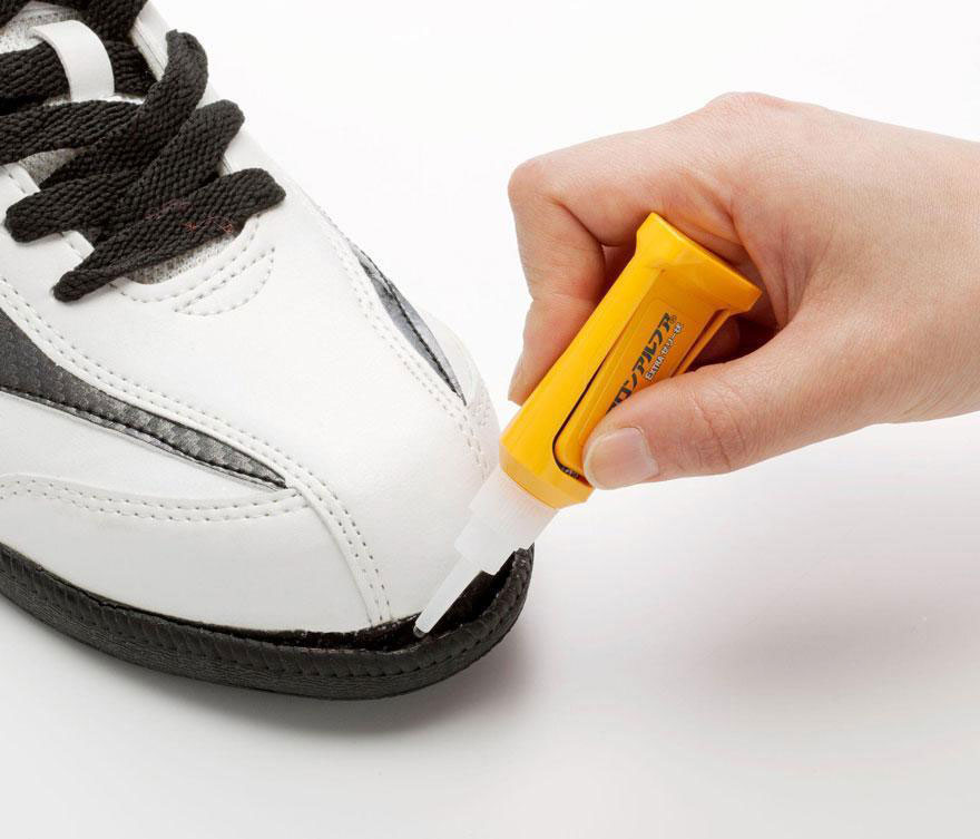 スニーカーの修理には、粘度の高い「アロンアルフア EXTRA ゼリー状」が便利です。EXTRAゼリー状はしみ込みにくいので、革の部分にも使用できます。また靴底がはがれてしまった場合も、粘度が高いので凹凸面にも塗りやすいです。
