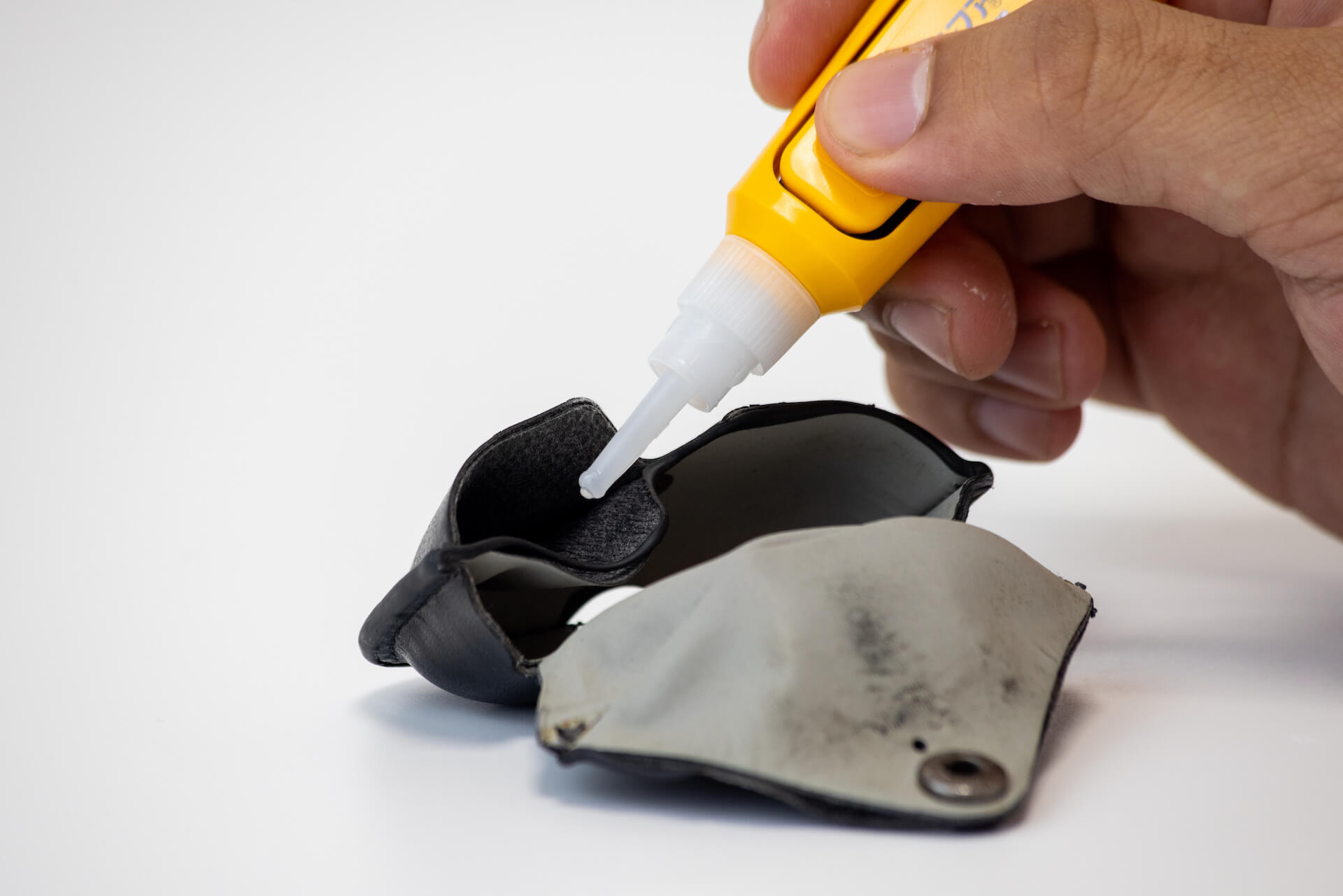 補修用のやすりが付いていて、接着面をなめらかにしてから補修することができるため、きれいに補修することができます。古い接着剤が残っていると、うまく接着ができないため、やすりできれいにすることが重要です。