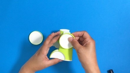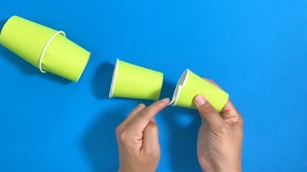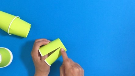 紙コップに切り込みを入れて、紙コップ同士を合わせられるか確認しましょう。