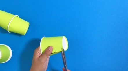 紙コップのふちじゃないほうを1cmほど、まっすぐ切ります。