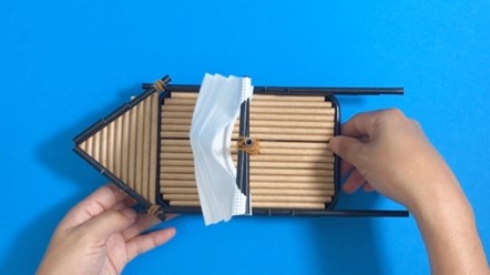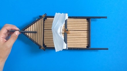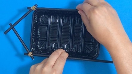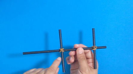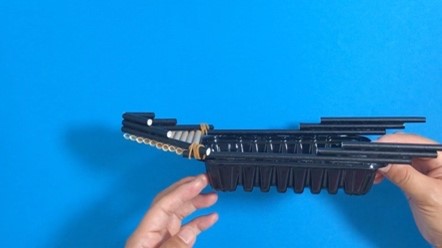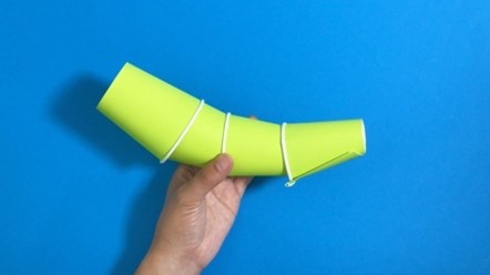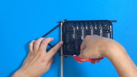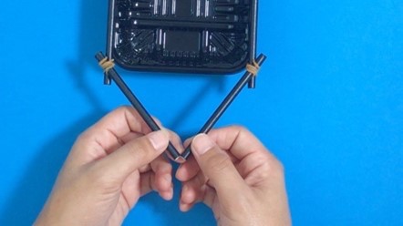 1-1と1-2のパーツを輪ゴムで固定してものを全部で3つ作れば、仕掛けの完成!