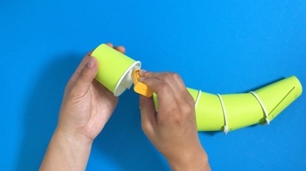 紙コップ同士を接着できたら、ティラノサウルスのお腹の完成!