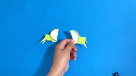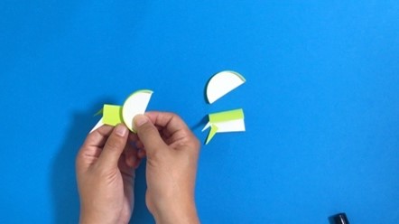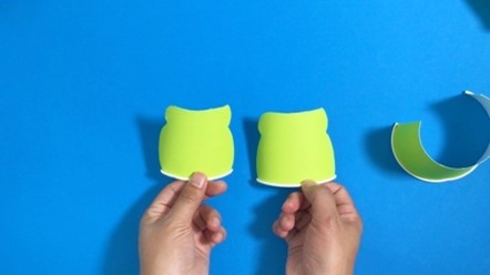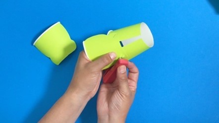 紙コップの底を半分に切って、7-2で作ったパーツの側面に接着して、手の完成!