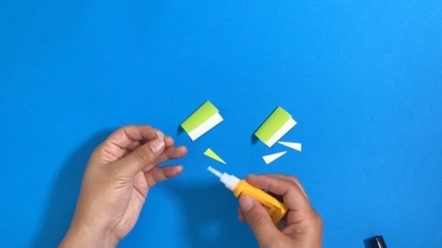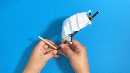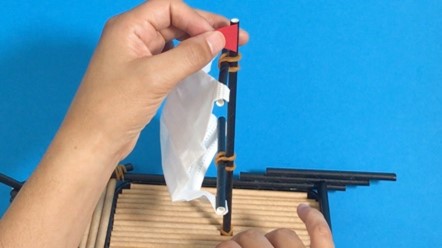 帆の先端に、長細い三角に切った紙を両面テープで貼り付けます。