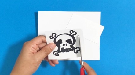 帆のサイズより小さい海賊マークを描いて、裏面に両面テープを貼り付けます。