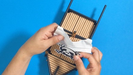 両面テープを剥がして、帆に貼り付けたら海賊旗の完成!