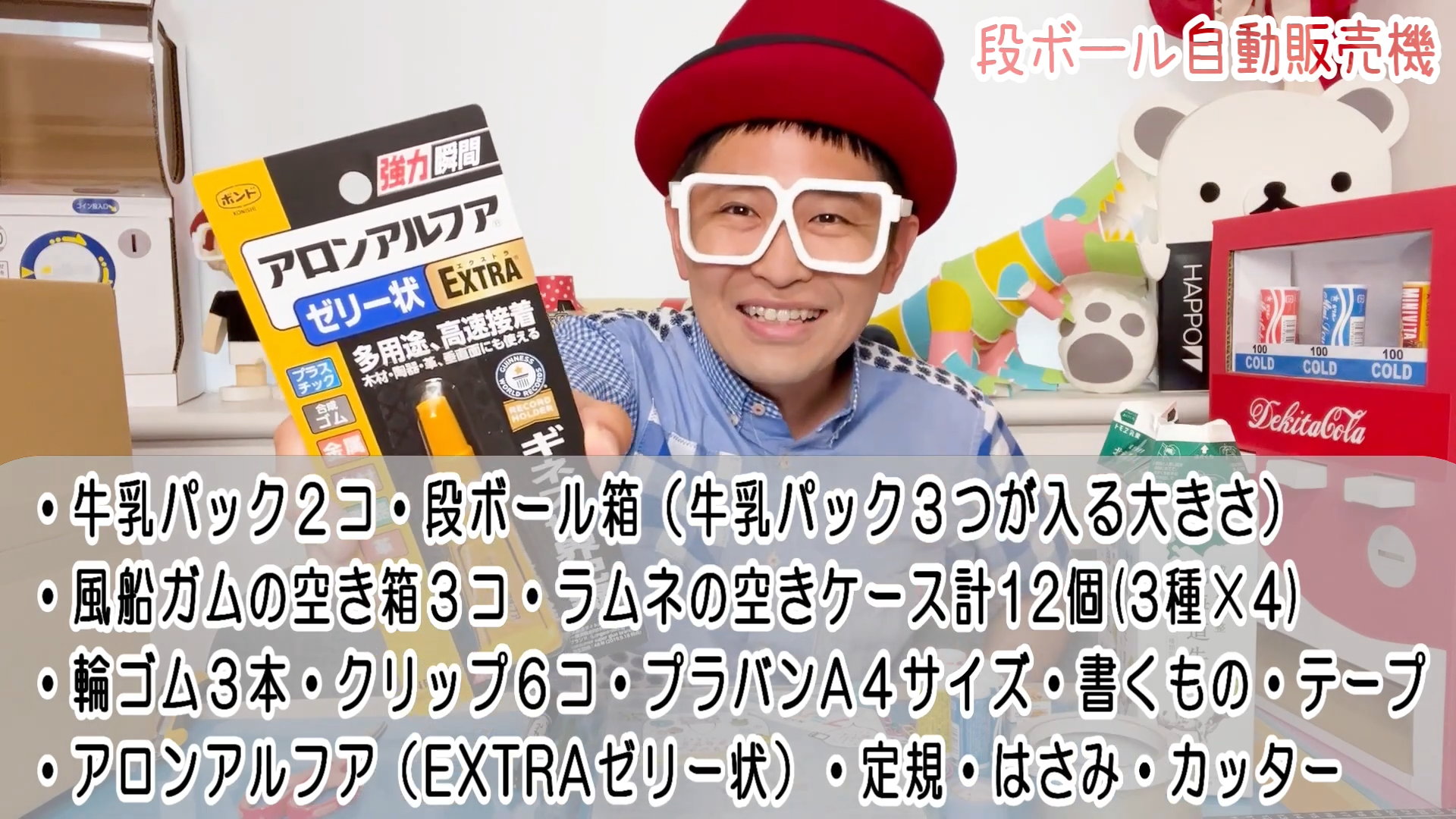 今回できたくんが、使用した接着剤は「アロンアルフア EXTRAゼリー状」。硬化時間が短いので接着面の小さい紙ストローなどもすぐにくっつけられ、ゼリー状のため、しみこみやすい段ボールの接着もばっちり。