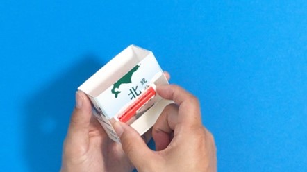 切った角を牛乳パックの内側に折りましょう。