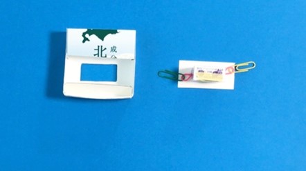 お菓子の箱、牛乳パック、クリップを使って、自動販売機の仕掛けの部分を作ります。同じものを3つ作りましょう。