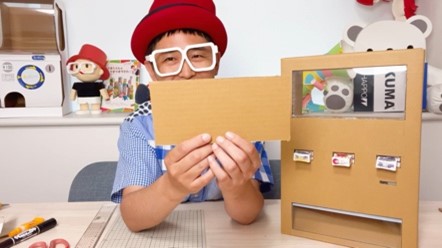 最後にご紹介するのは「段ボール自動販売機」です。段ボールや牛乳パックなどの材料を使って、楽しく遊べる自動販売機が作れます。先に紹介した2つの工作と比べると工程は多くなりますが、その分完成したときの達成感も大きいはず。