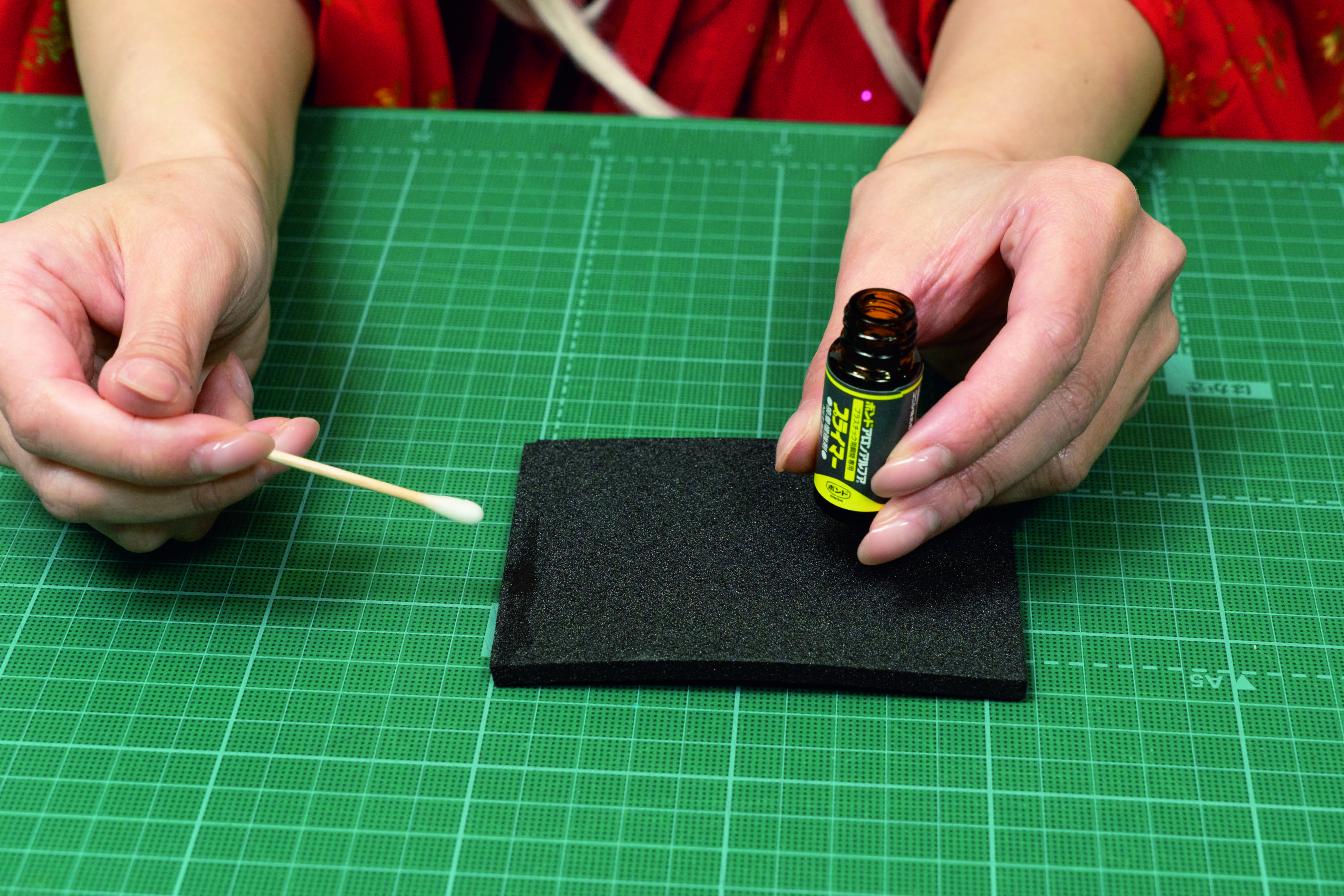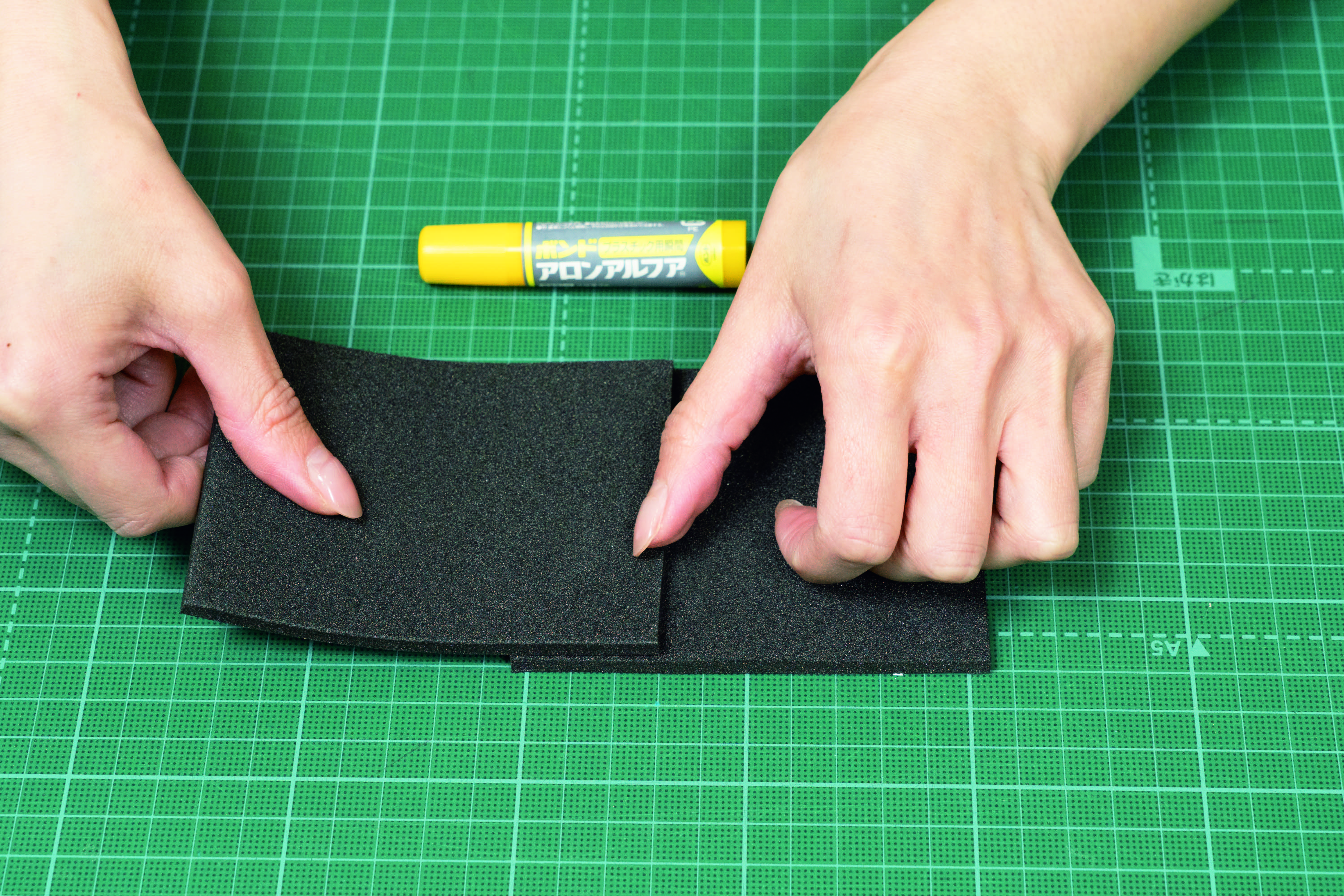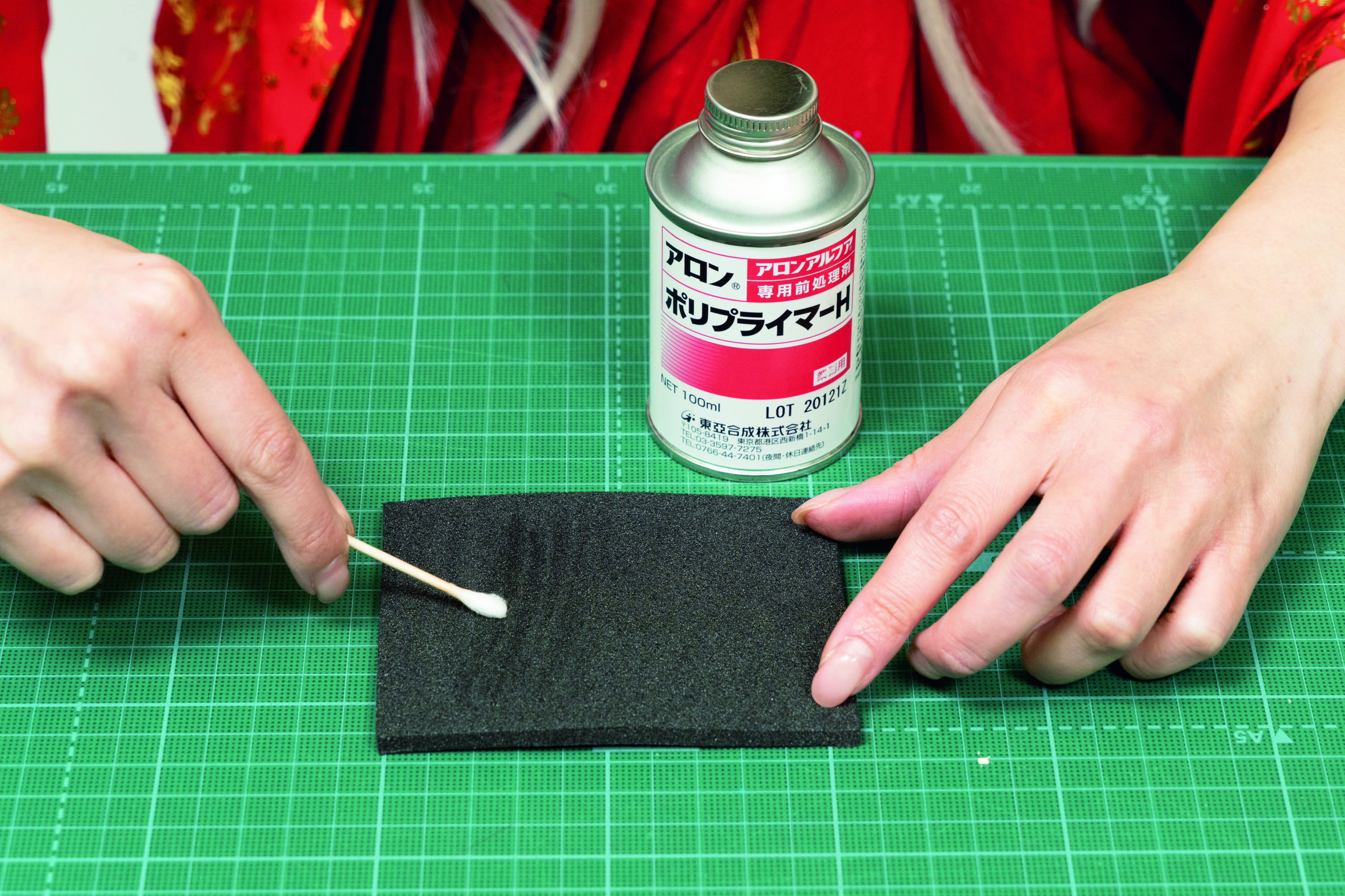 「コスプレ造形は木材や金属はあまり使わず、基本は軽量の素材を使います。接着だけでなく布を貼ったり、接着剤の使い方も多種多様なんです。アロンアルフアはいろいろな種類を見かけますが、何にどれを使うのが正解なのでしょうか?」