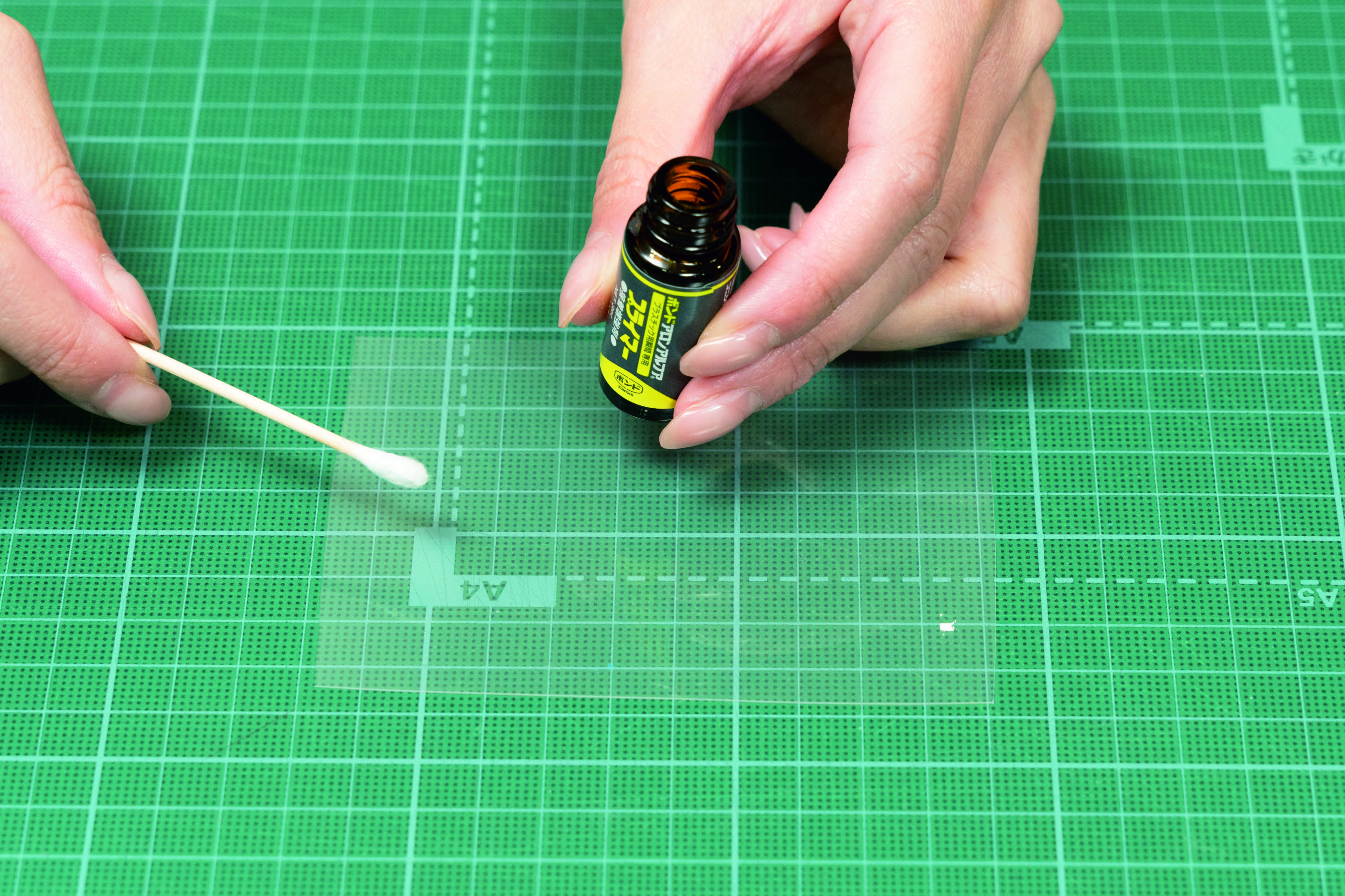 クリアファイルの接着にはプラスチック用と付属のプライマーの使用がおすすめです。
