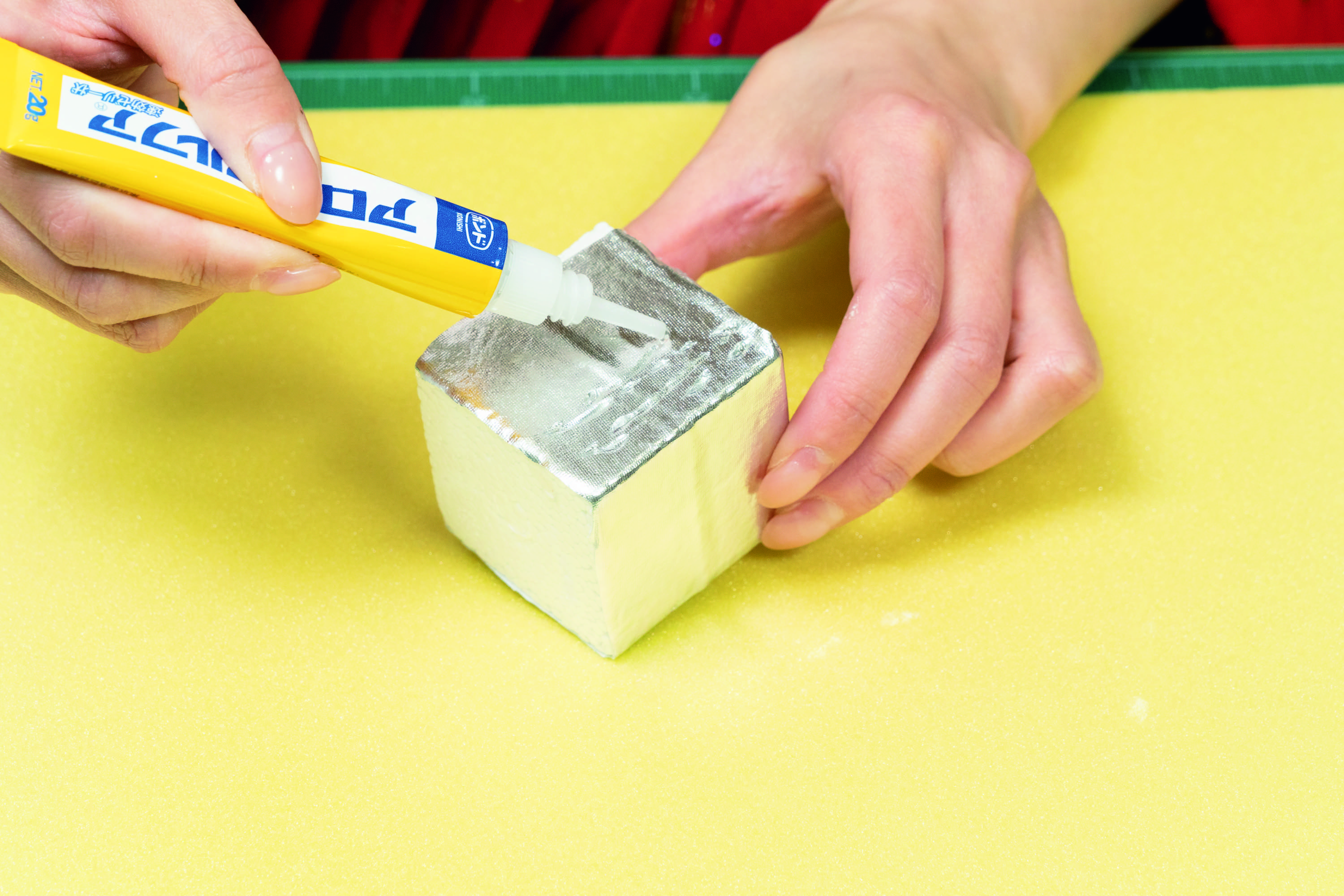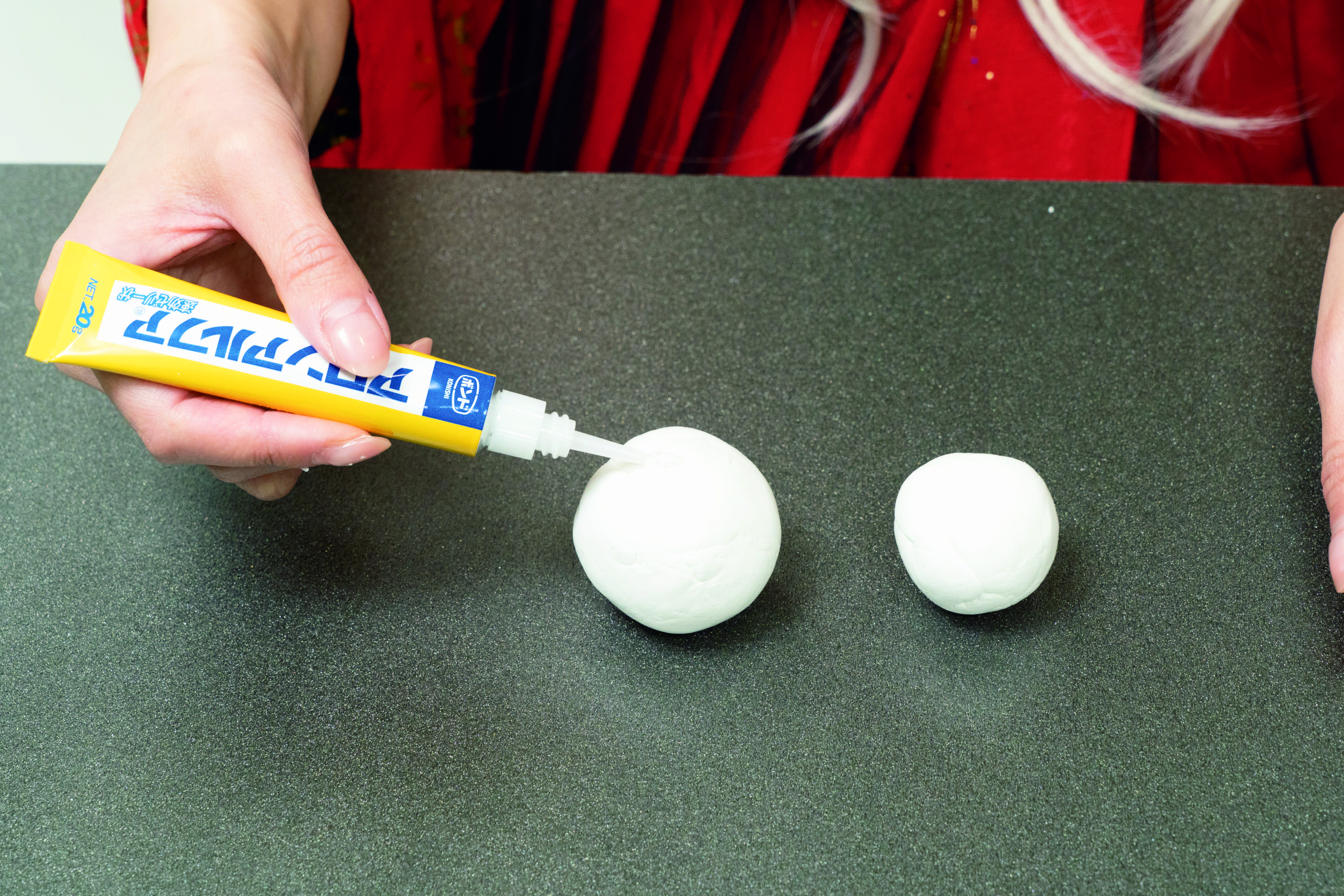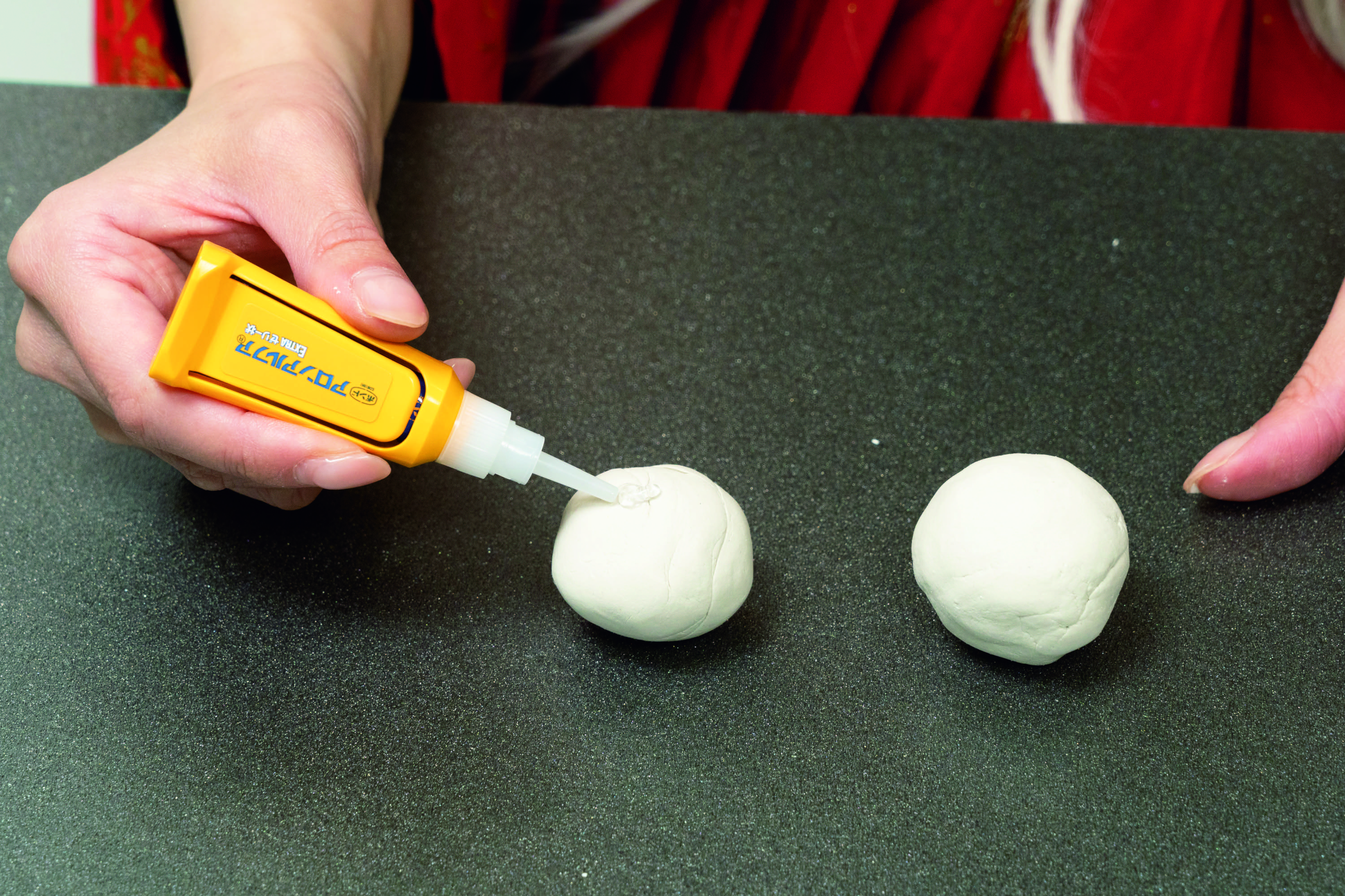 紙粘土で成形した立体状のものを接着する際は、斜めにしても垂れにくい高粘度のプロ用速効ゼリー状がおすすめ。