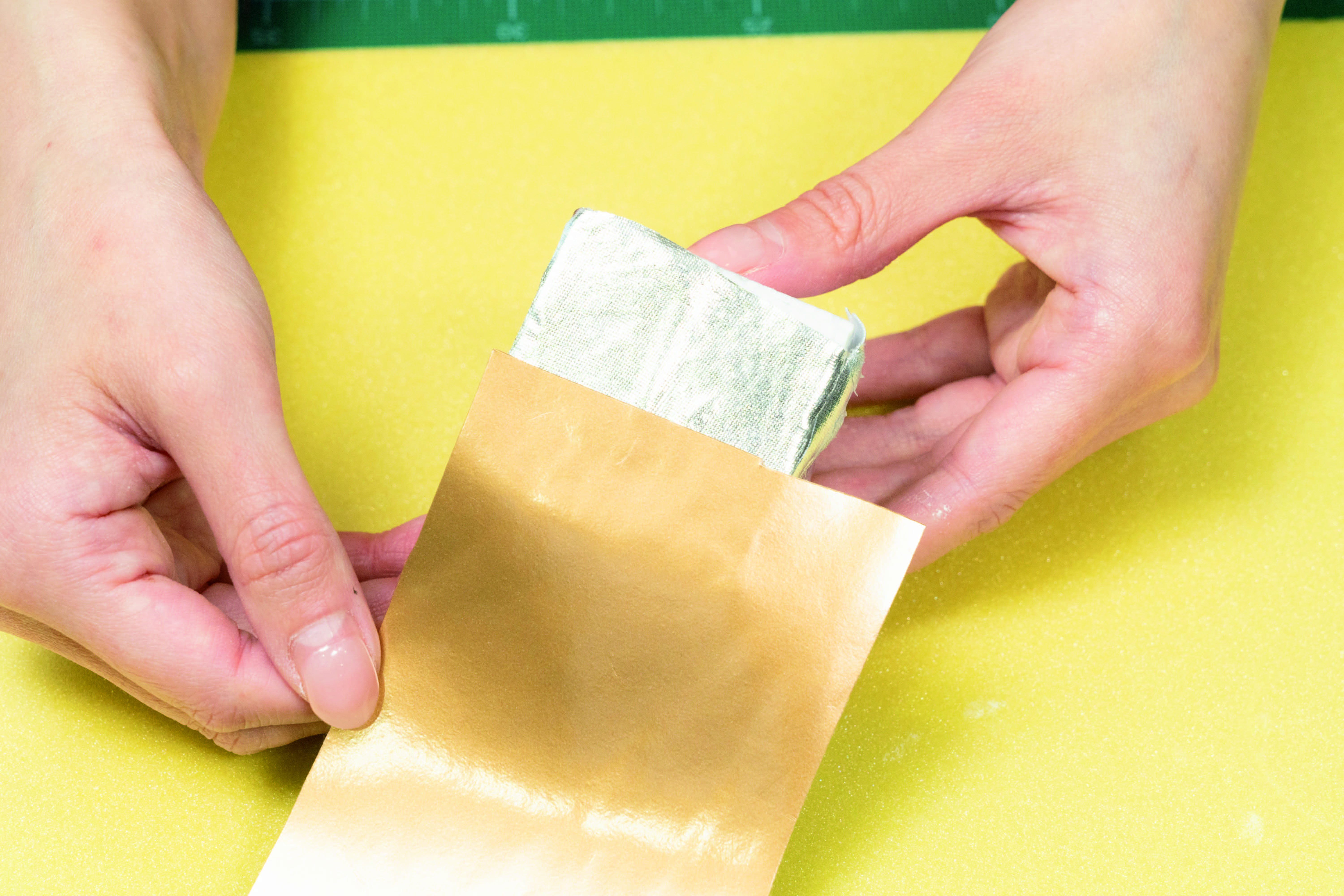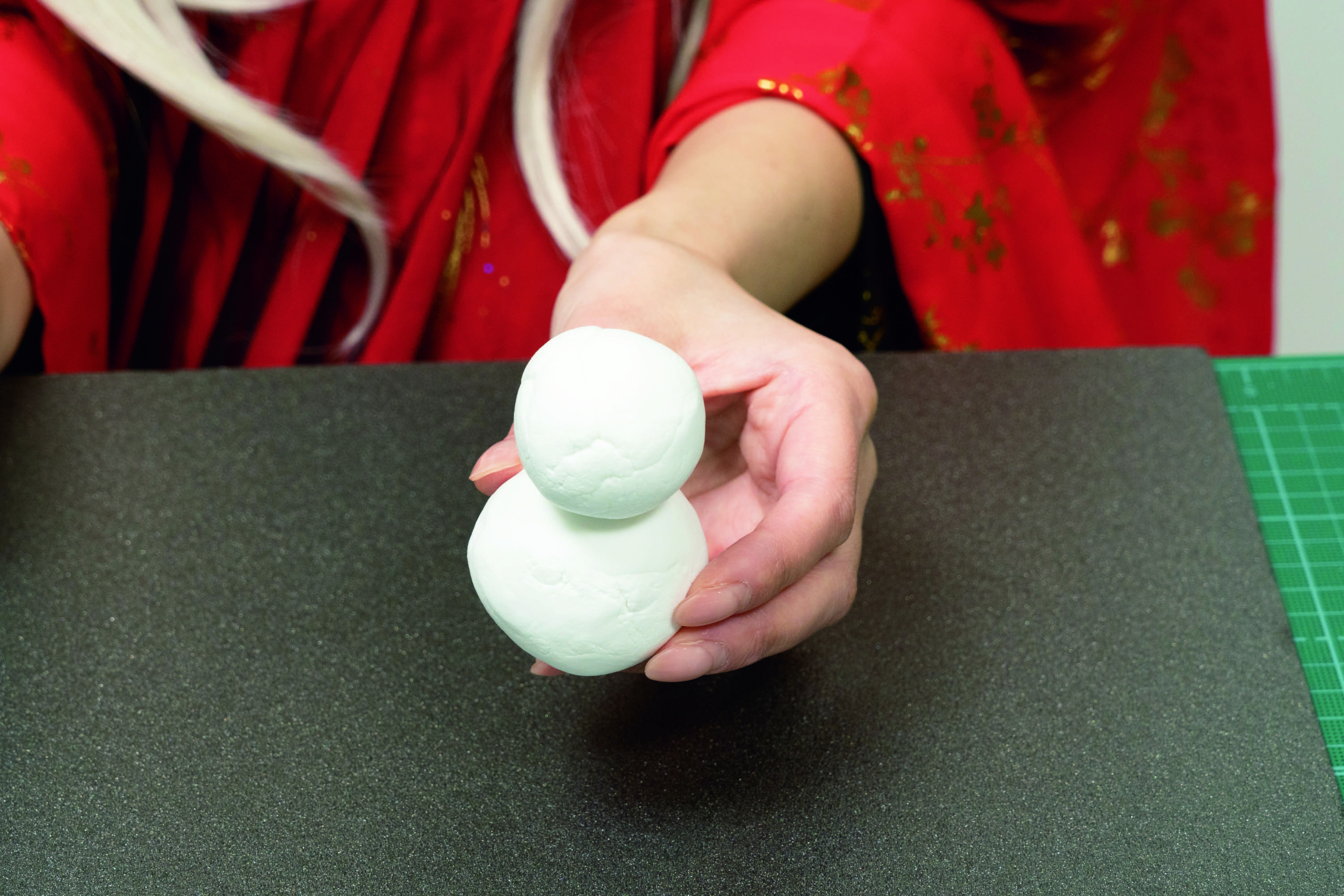 柔らかい素材でハサミなどで簡単に切ることができて、温めると曲がり、冷めると曲げた形で固まるため、武器や防具、装飾品など、さまざまな曲面の表現に便利です。
