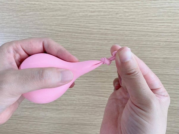 空気が入ってしまった場合は、すき間からそっと押し出すように抜きましょう。最後に粉がもれないよう気をつけながら、風船の口を結びます。