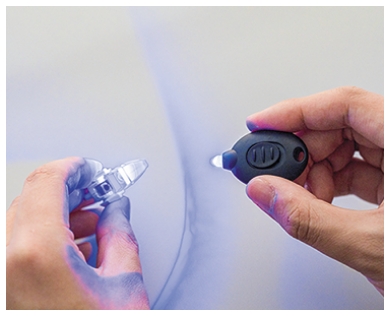 また、ライト照射により、接着剤特有の白化現象を抑えることができ、仕上がりが美しいというメリットもあります。