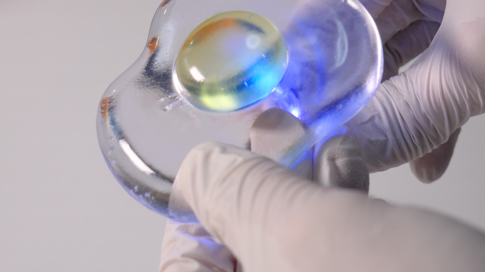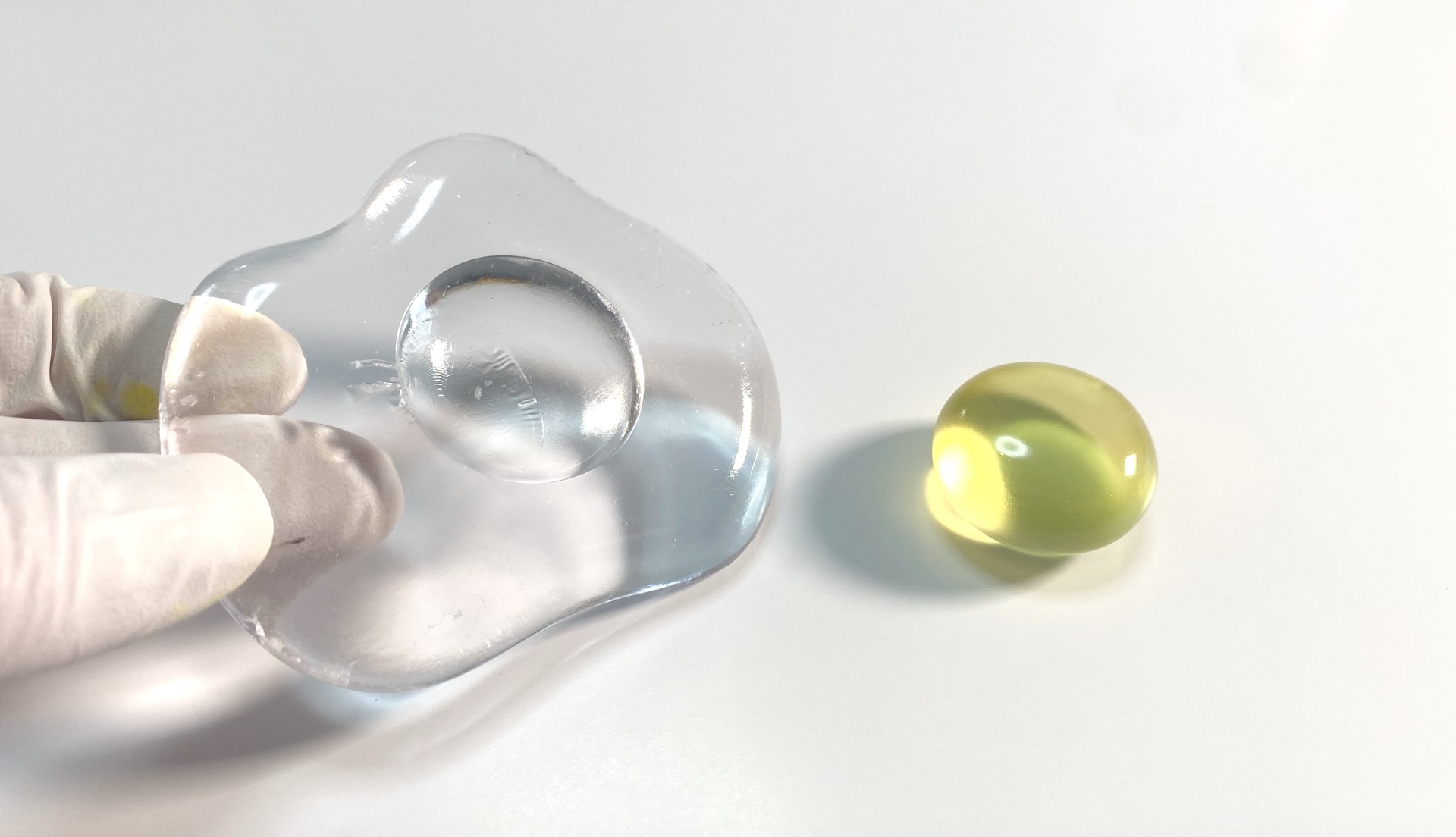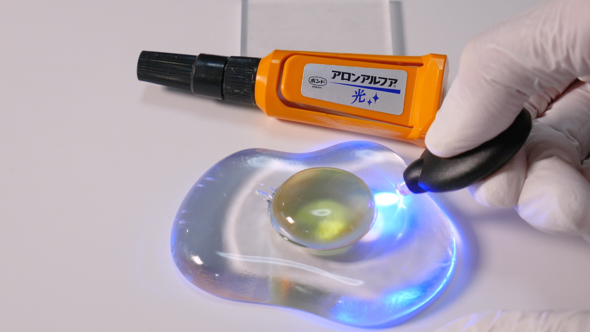 透明パーツ同士を接着する際、従来の接着剤ではツルツルした面がうまく固定できず、接着強度が不足することがありました。