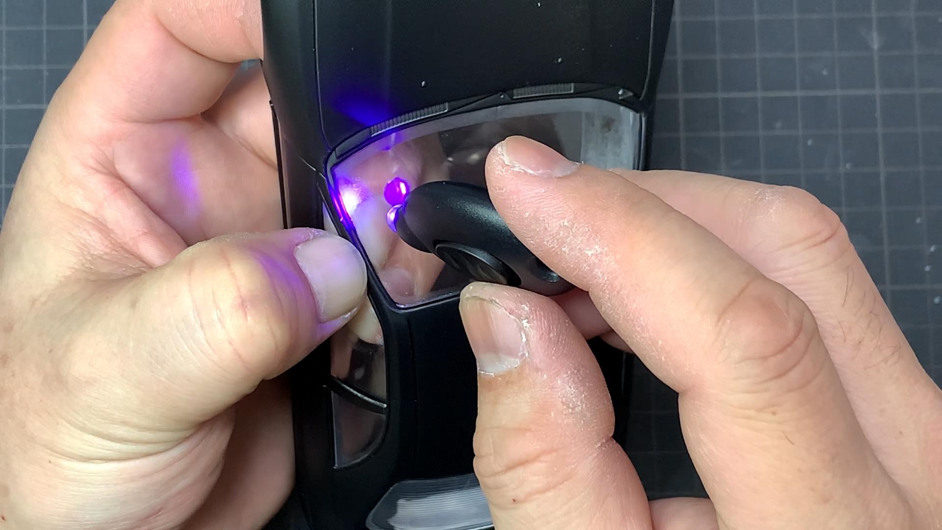 「アロンアルフア 光」は光を当てることでわずか10秒ほどで硬化します。この特性により、工程が多いカーモデルなどの作業時間の短縮が可能となります。